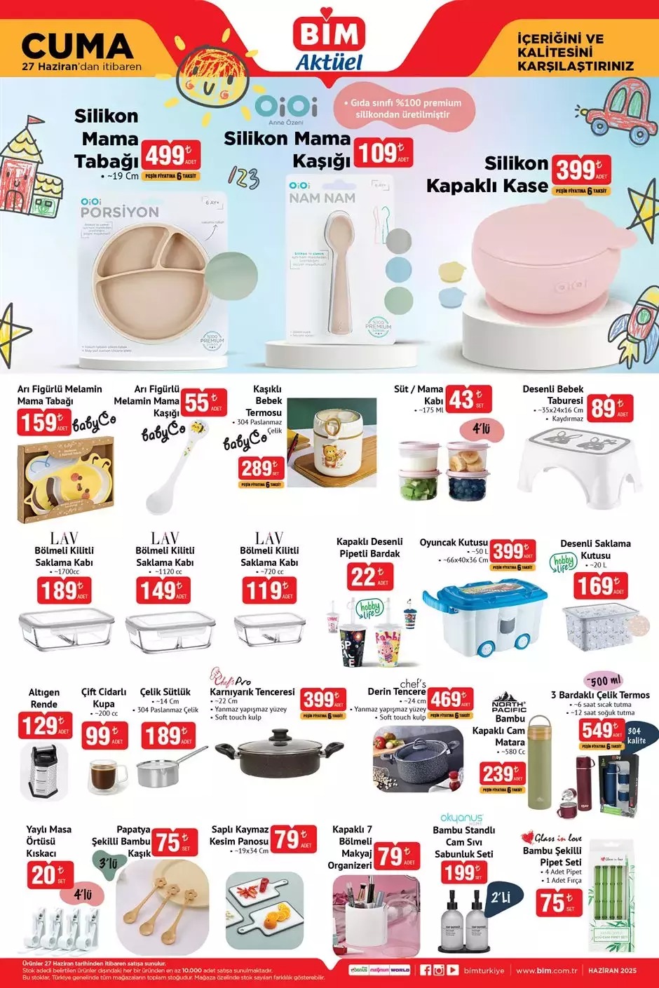 BİM yeni haftaya özel kataloğunu yayımladı! 27 Haziran Cuma gününden itibaren raflarda yerini alacak indirimli ürünler arasında miniklere özel oyuncaklardan mutfak gereçlerine kadar geniş bir yelpazede ürünlerin yer alıyor. İşte BİM Cuma kataloğu…