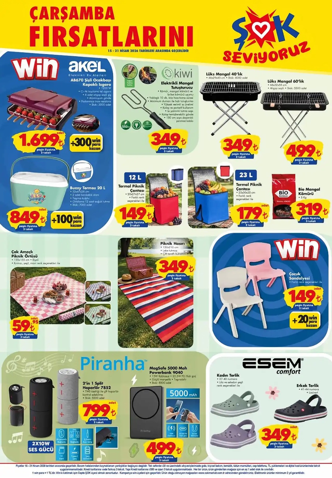 Merakla beklenen ŞOK marketin 15 Nisan 2026 katalogda yer alan ürün listesi şu şekilde;