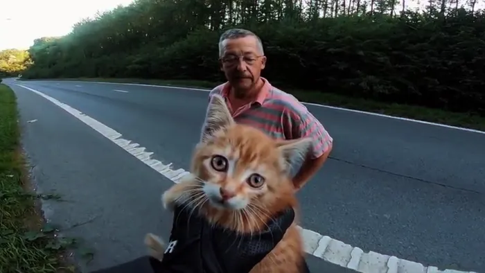 Motosiklet sürücüsü yavru kediyi böyle kurtardı